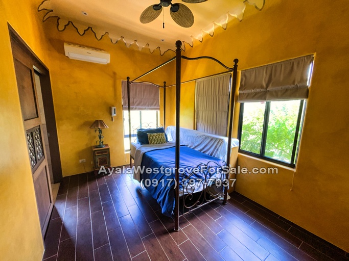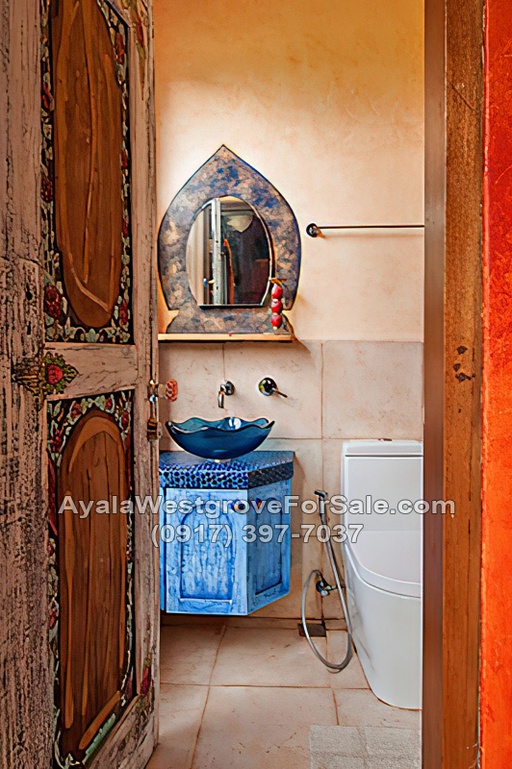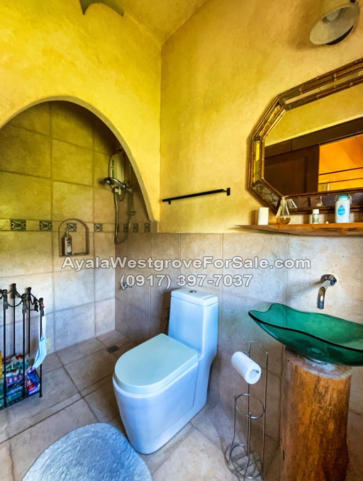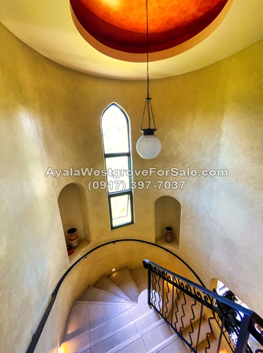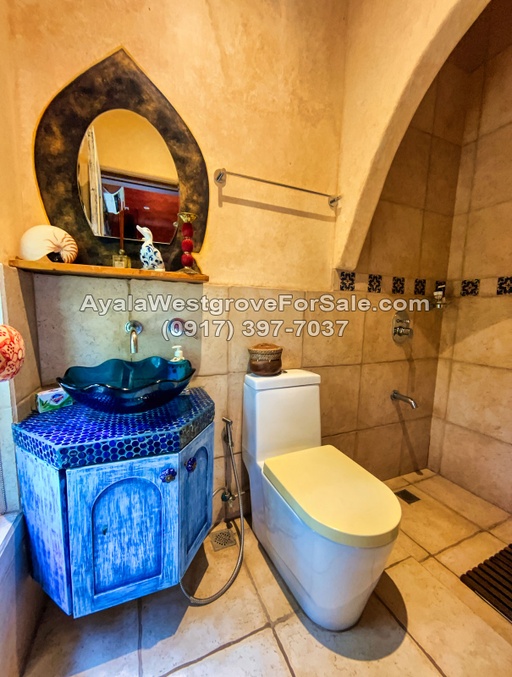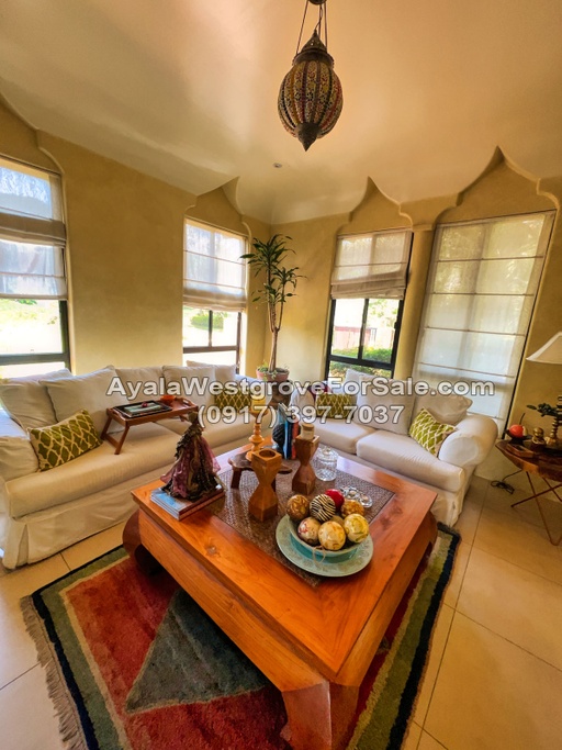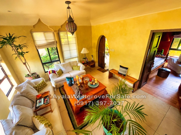 This Moroccan-designed home in Ayala Westgrove Heights boasts of a regular-shaped lot and a gently sloping terrain. With a floor area of 460 square meters, this 3-bedroom house has a unique design that takes advantage of the great views of Laguna de Bay and the Rizal mountains. The property is situated near Kidsgrove, which offers various amenities such as a swimming pool, wet-play area, skating rink, playgrounds, open-air basketball court, and a multi-function room. It also has a 4- to 6-car garage, 12 solar panels, and a basement.